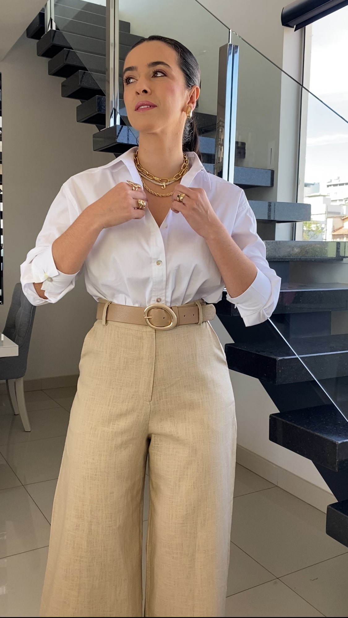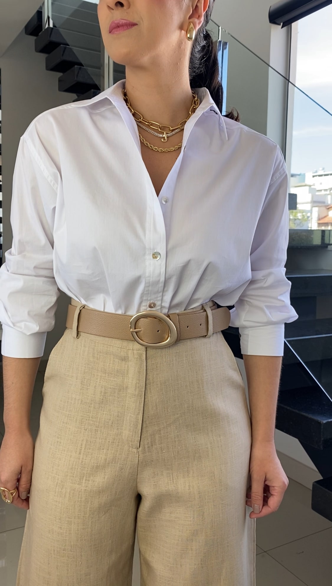 Cinto 100% couro, com fivela metalizada dourada em formato orgânico super moderna.